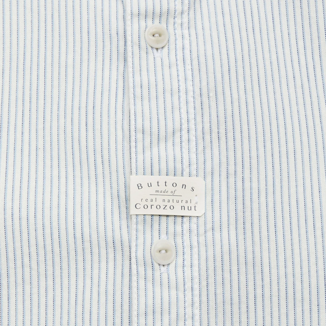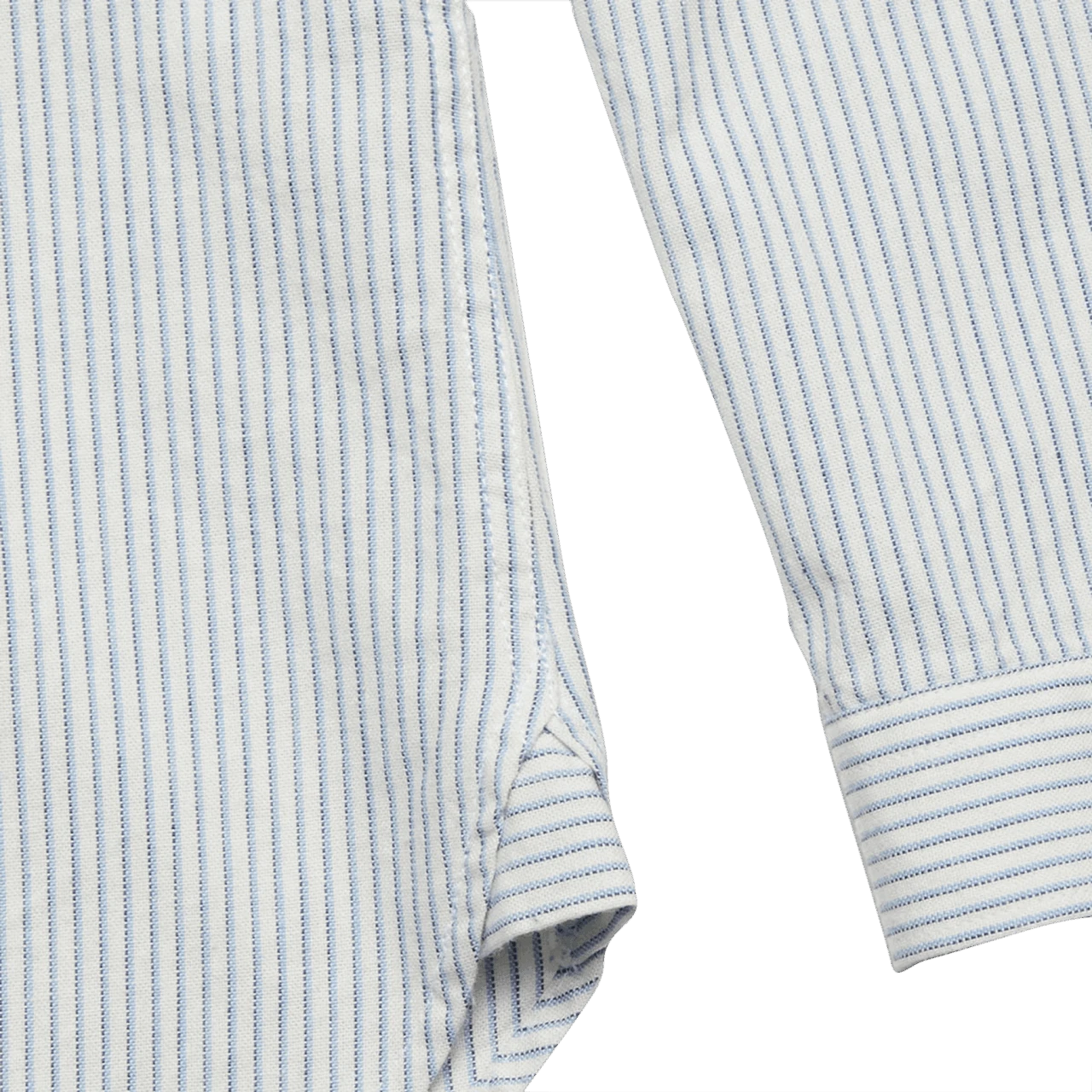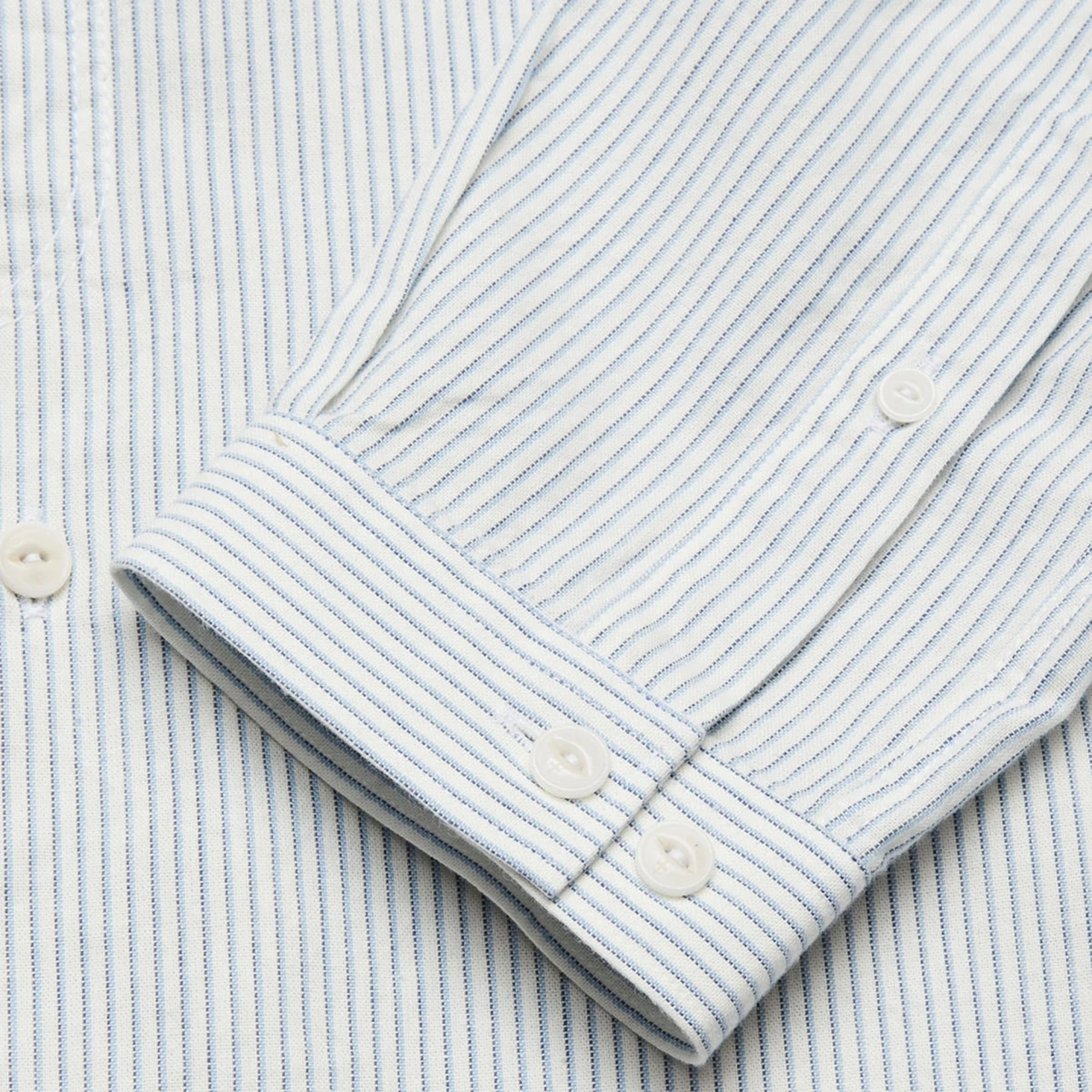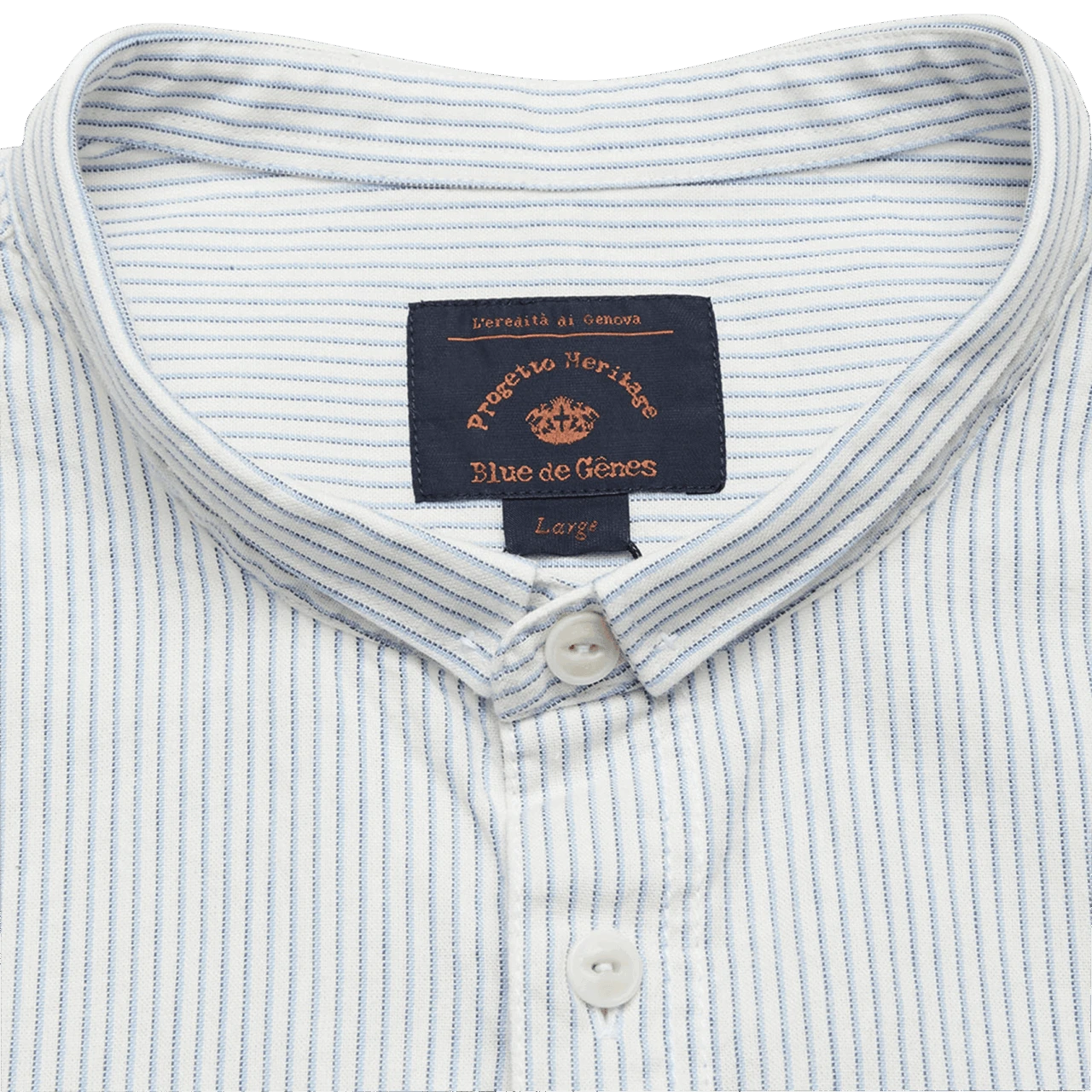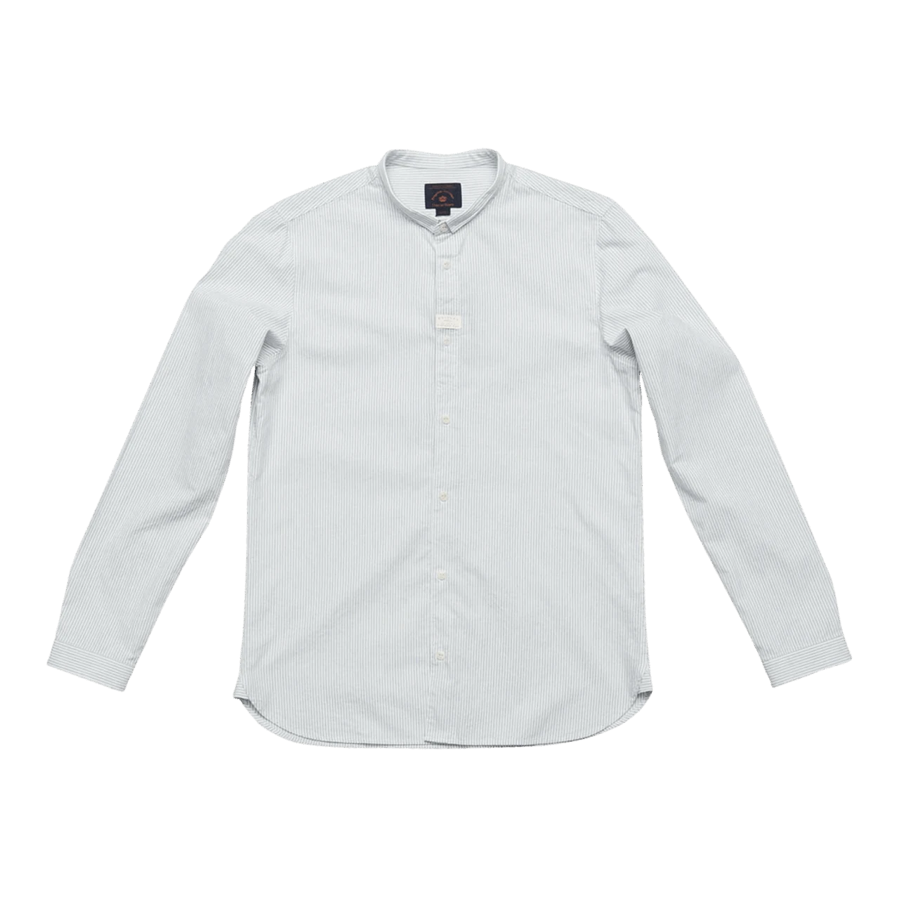 Ein langärmeliges Hemd mit Knopfleiste und Grandad-Kragen in normaler Passform. Aus leichtem, knackigem Baumwollpopeline mit garngefärbten Streifen und Kontraststoff an Innenkragen und Manschette.