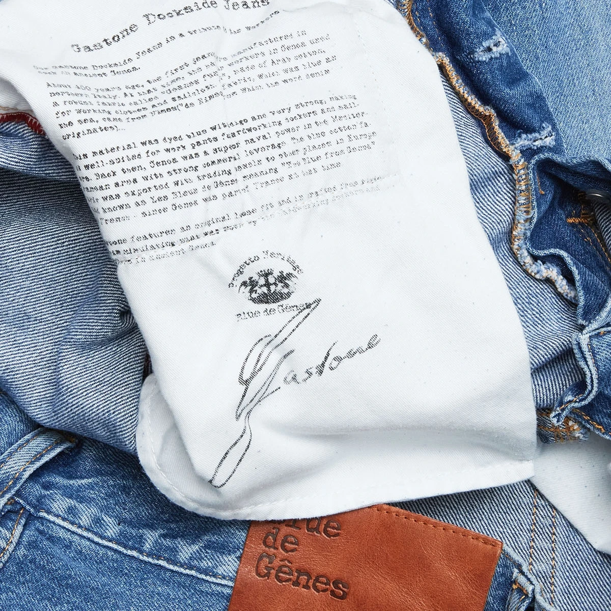 Blue de Genes ist ein 1983 gegründetes Label mit einer klaren Ausrichtung und Philosophie. Blue de Genes verbindet den Flair der mediterrane Küste, mit der Derbheit der alten Hafenstadt Genuas. Die so entstandenen Looks sind robust, derb und dennoch mit Stil. Die Modelle mit einem authentischen Aussehen, sind handwerklich solide und mit hochwertigen Materialien, sowie mit viel Liebe zum Detail verarbeitet. Wichtig für Blue de Genes ist, dass Kleidungsstücke nie aus der Mode kommen, lange verwendet werden können und beim Tragen wunderschön altern.