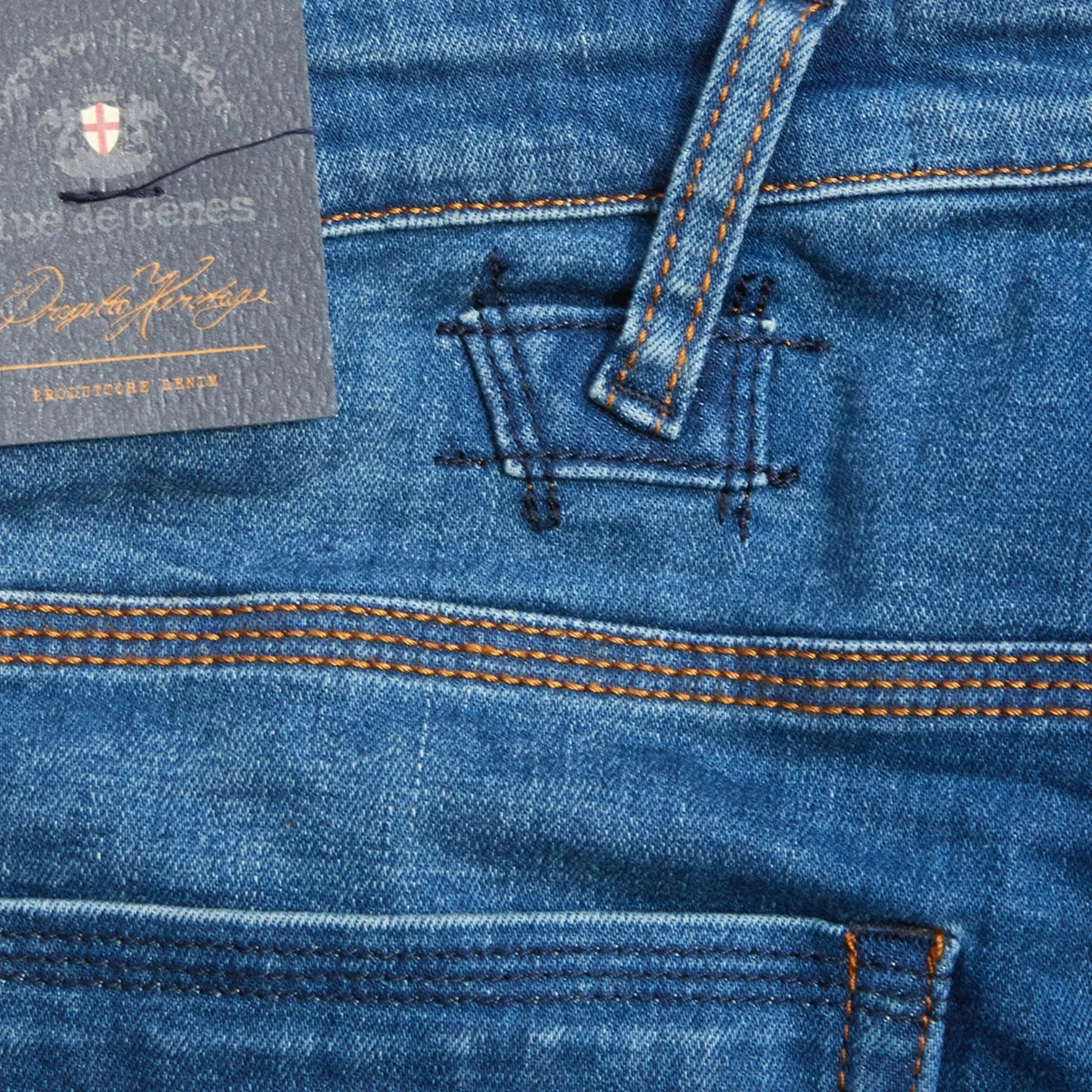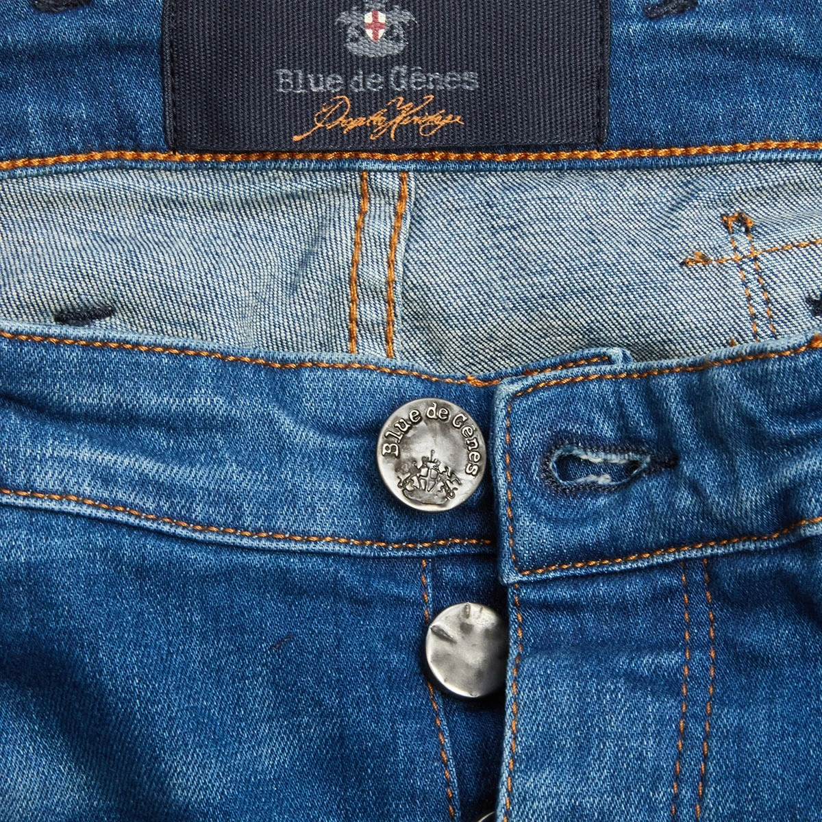 Das Repi Modell ist das Regular Slim Fit Jeans. Eine klassische Five-Pocket-Jeans mit Knopfverschluss und asymmetrischen Gesäßtaschen, die für längere Haltbarkeit gefüttert sind. Diese Jeans sind für die Ewigkeit gemacht. Ausgestattet mit Reparaturdetails an der Münztasche und der hinteren Gürtelschlaufe, Taschenaufdruck, Markenknöpfen, verdeckten Nieten und der subtil platzierten Niete der Blue de Gênes-Flagge an der rechten Vordertasche.