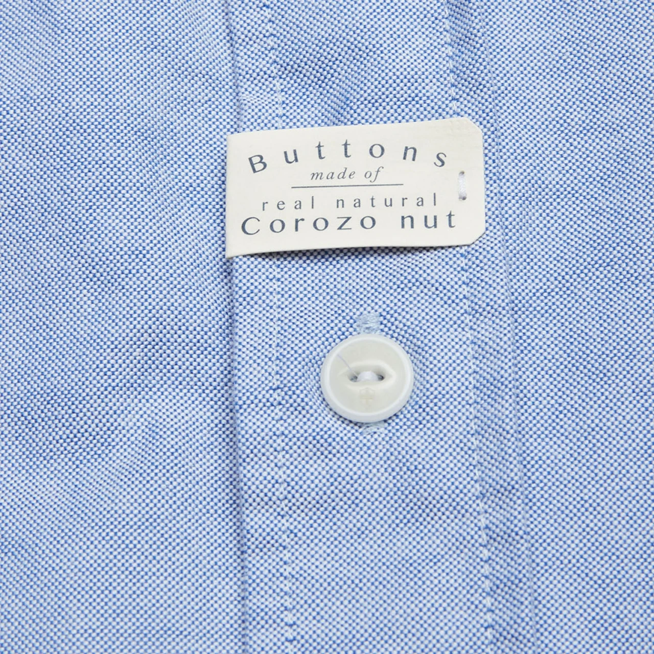 Ein klassisches Button-Down-Hemd mit Brusttasche, kleiner Logostickerei unterhalb der Tasche, einem geschwungenen Saum und Knöpfen aus Corozo Nut.