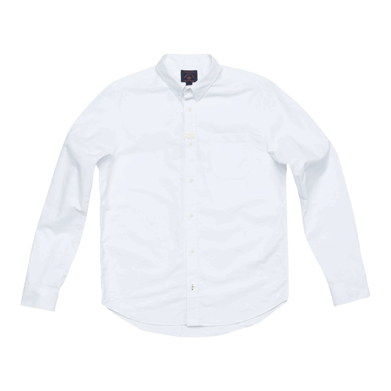 Ein klassisches Button-Down-Hemd mit Brusttasche, kleiner Logostickerei unterhalb der Tasche, einem geschwungenen Saum und Knöpfen aus Corozo Nut.