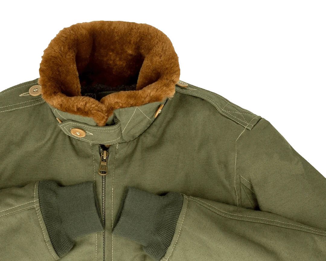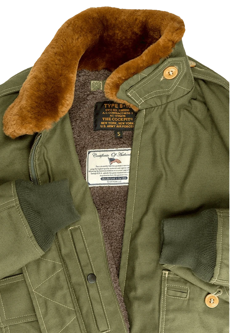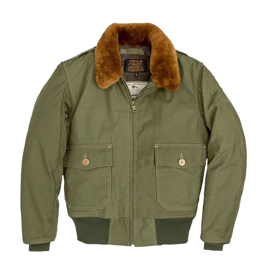 Diese Kombination leutete mitunter das Ende der Schaffelljacken ein, denn die B-10 war schneller und einfacher zu beschaffen und war dabei auch noch deutlich praktischer als die schweren, dicken Sheerling Jackets. Das B-10 Flight Jacket läutete die Ära moderner Fliegerjacken ein. Die leichteren, mehrschichtigen Baumwolljacken mit isolierenden Futtern war wegweisend für die spätere Entwicklung der Nylon und heutigen Nomex Jacken. Made in USA.
