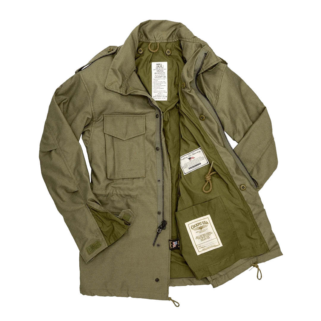 Die Cockpit USA M-65 ist ein hervorragendes Beispiel für Originalbekleidung des Militärs aus dem Kalten Krieg der 1960er Jahre. Sie ist ein tadellos geschneiderter und wirklich authentischer Feldmantel der US-Armee, der nach den Militärspezifikationen von 1965 in der Originalfarbe OG107 Oliv hergestellt wurde. Ursprünglich wurde diese robuste Feldjacke von den amerikanischen Truppen von den 1960er bis in die 1990er Jahre getragen und war auf Leichtigkeit und Bewegungskomfort ausgelegt. Die M-65 Field Jacket ist aufgrund der Zusammensetzung des Gewebes und nicht aufgrund zugesetzter Chemikalien für 30 Minuten wasserdicht.