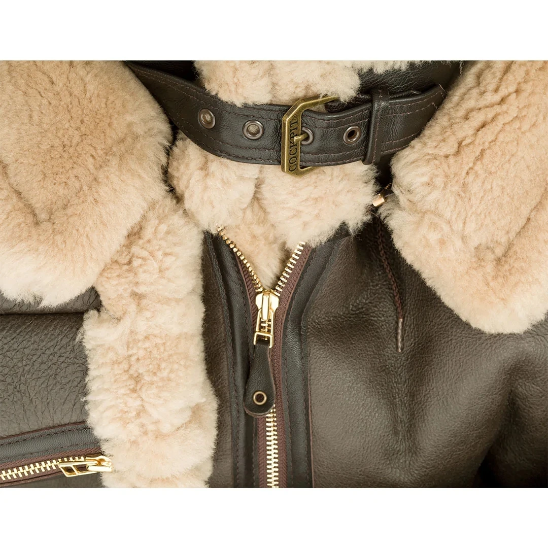 Die englische RAF-Schaffelljacke der 30-40er Jahre unterscheidet sich von ihren amerikanischen Pedant, der B-3, durch das lässige Revers und den Ledergürtel am Bund. Während sich vergleichbare Modelle von Aero Leather und Eastman durch eine hohe Authentizität auszeichnen, ist die Cockpit Jacke in einigen Details deutlich alltagstauglicher ausgeführt. Die Reißverschlüsse sind deutlich robuster und zusätzliche Seitentaschen machen diese Variante auch alltagstauglicher.