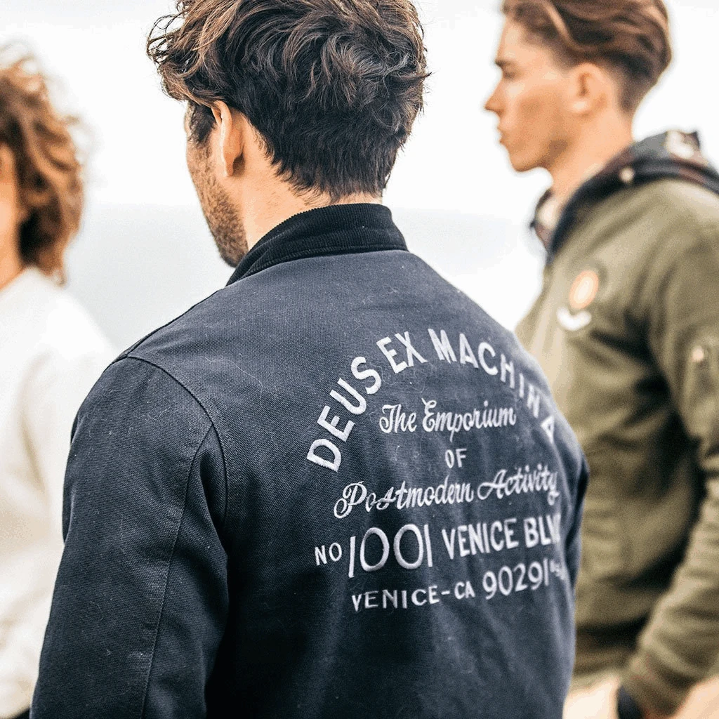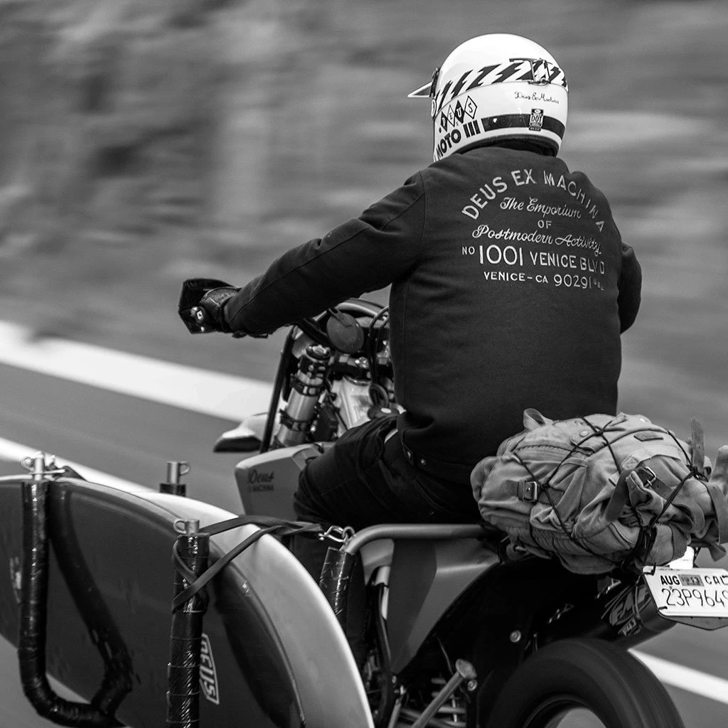 Deus ex Machina (Gott der Maschine) sauste 2006 mit Custombikes (meist Café Racer) in das Bewusstsein Australiens und nach und nach auch in den Rest der Welt. Doch Deus verkauft nicht nur Kleidung, Custom Parts und handgefertigte Motorräder, sondern feiert auch eine Kultur der Kreativität. Alle sind unter dem Dach von Deus willkommen solange Respekt für die Ehrlichkeit und den Spaß an der Maschine herrscht. Authentizität, Männlichkeit, Kreativität, Mut aus Überzeugung, Intelligenz, Zweckmäßigkeit, Unverfrorenheit, Selbstbewusstsein, Begeisterung und Qualität – dafür steht DEUS EX MACHINA.