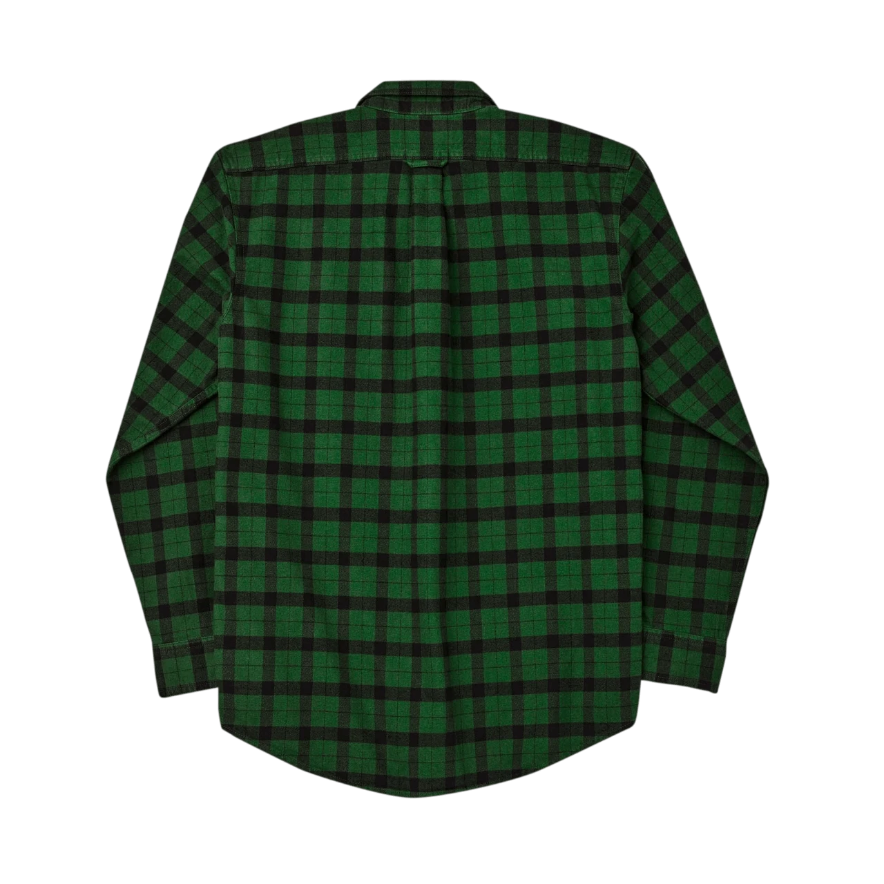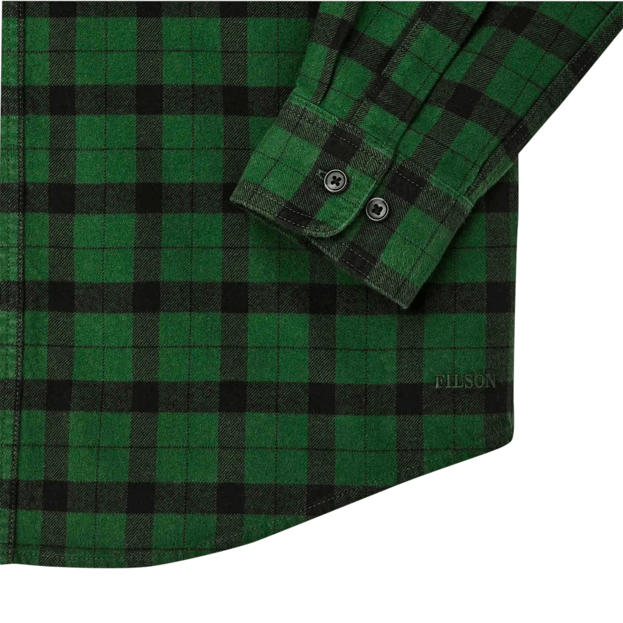 Filsons ikonische Flanell ist auf beiden Seiten gebürstet und bietet eine softe, warme Extralage, die auch an kalten Tagen ideal über nur einem T-Shirt getragen werden kann. Das dichte, eng gewebt Gewebe schützt von kühlen Brisen und sorgt für eine unübertroffene Haltbarkeit. Der weite Schnitt mit der Dehnfalte bietet eine uneingeschränkte Bewegungsfreiheit, unabhängig davon, ob Sie eine Schrotflinte schultern, eine Fliege werfen oder eine Axt schwingen. Zwei Brusttaschen mit zwei Klappen sind für sperrigere Gegenstände geeignet und mit praktisch unzerbrechlichen benutzerdefinierten Filson-Knöpfen gesichert. Das Shirt ist vorgewaschen und sanforisiert.