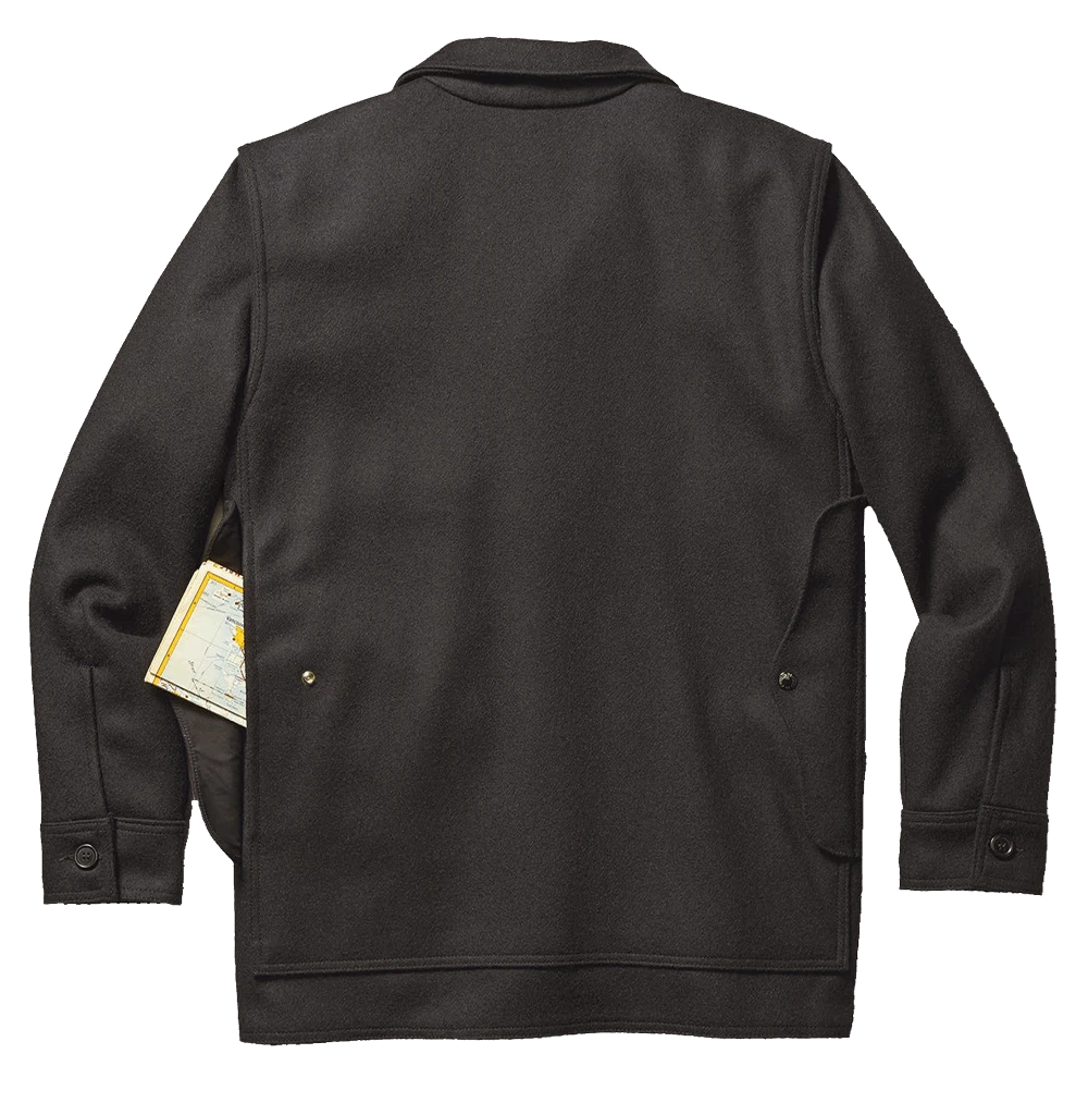 Die dicke, schwere Wolle der Mackinaw´s sind allen Wetterbedingungen gewachsen. Sie hält warm, ist robust und funktional. Die vielen Taschen verstauen alle Utensilien und als Clou gibt es eine Vollformat Kartentasche im Rücken. Diese Jacke ist seit 1914 im Filson Sortiment und ist auch heute noch weit mehr als ein Requisit alter Tage.
