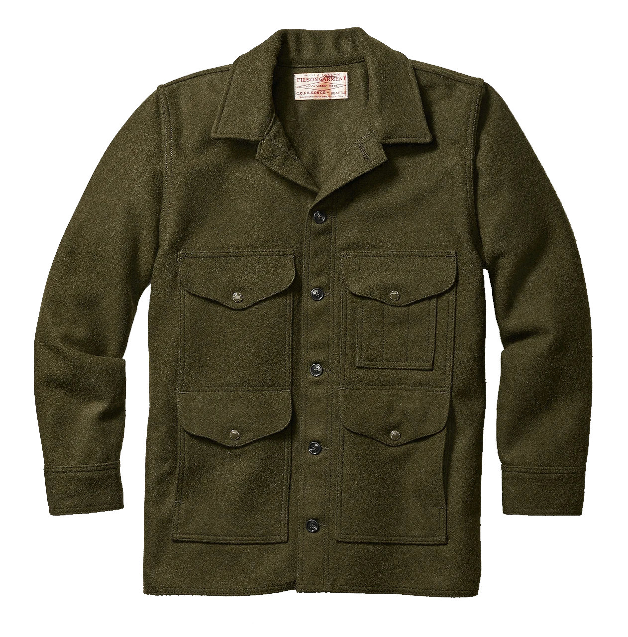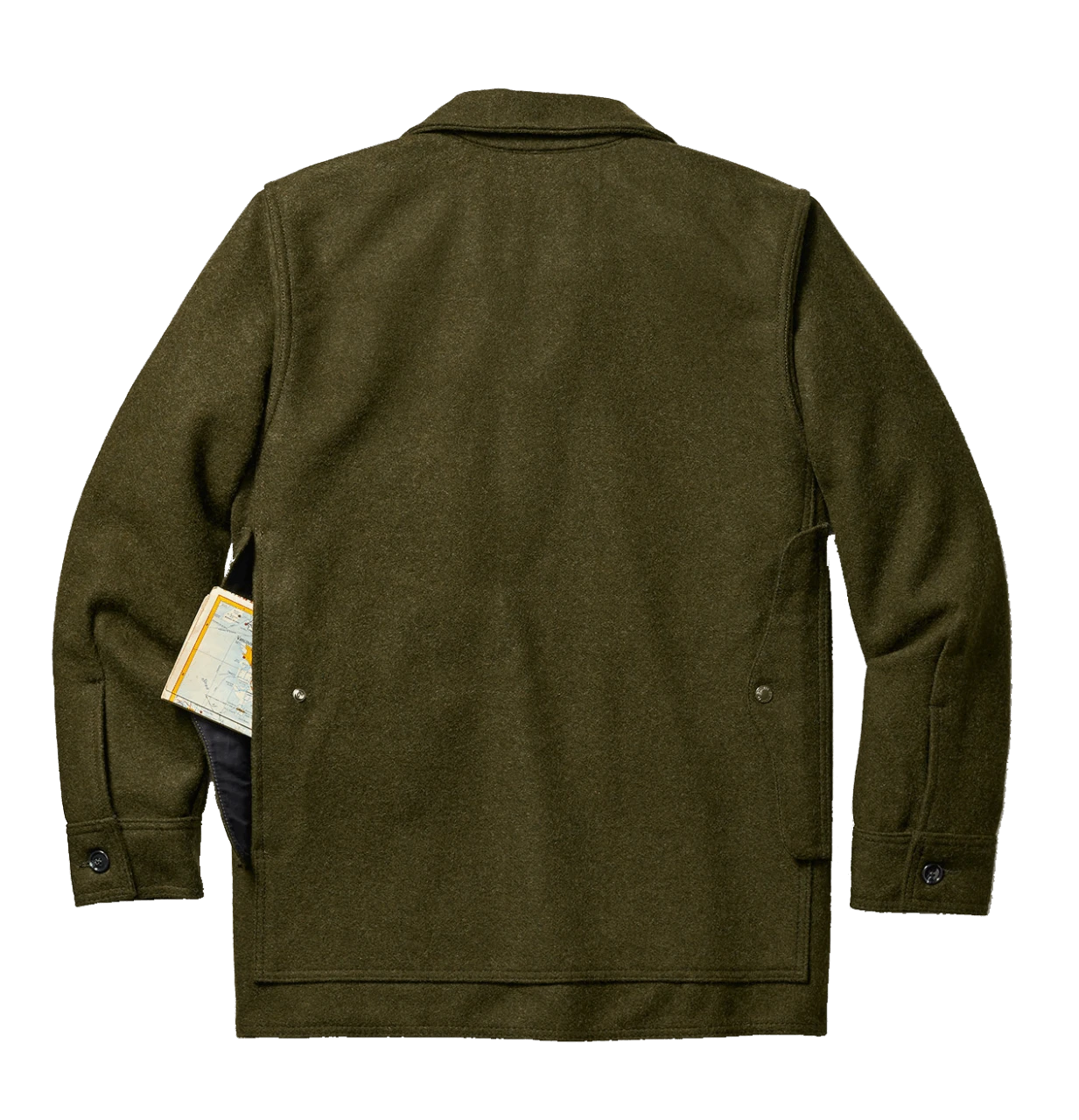 Die dicke, schwere Wolle der Mackinaw´s sind allen Wetterbedingungen gewachsen. Sie hält warm, ist robust und funktional. Die vielen Taschen verstauen alle Utensilien und als Clou gibt es eine Vollformat Kartentasche im Rücken. Diese Jacke ist seit 1914 im Filson Sortiment und ist auch heute noch weit mehr als ein Requisit alter Tage.