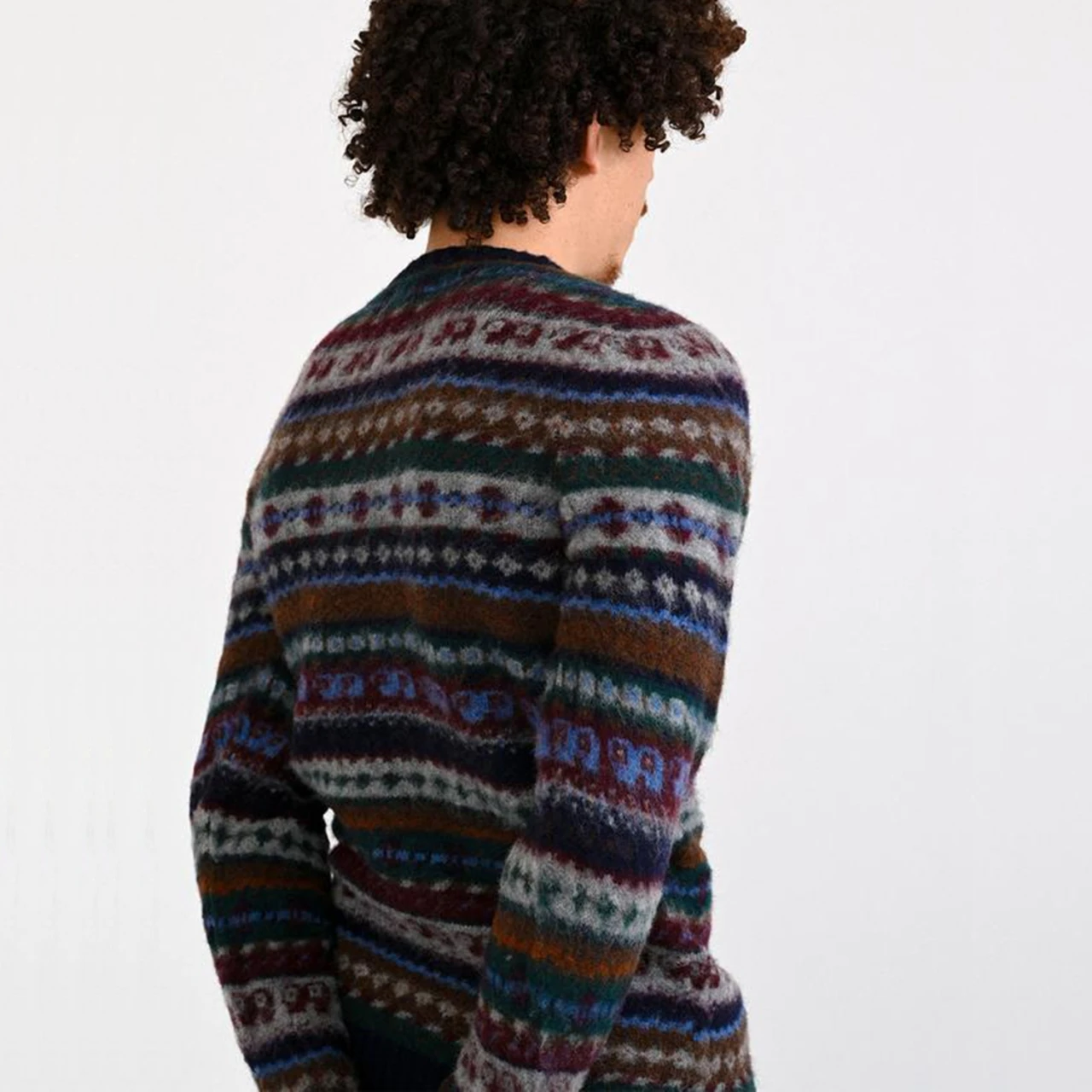 Schottland hat eine lange Geschichte in der Herstellung der weltweit besten Strickwaren. Mit dem Talent von Howlin, den schottischen Strickwaren einen frischen, etwas verdrehten Ansatz zu verleihen und gleichzeitig ihr reiches Erbe zu respektieren, blühen alte Webtechniken mit neuen Mustern, Farben und Ideen neu auf. Als exklusiver Nischenhersteller hat Howlin den Vorteil jedem Teil die nötige Aufmerksamkeit und Sorgfalt zuteil kommen zu lassen. Zusammen mit dem überragenden, schottischen Know How rund um die Wolle und der Wollverarbeitung, genügen die Howlin Pullover höchsten Ansprüchen. Die Naturgarne stammen aus lokalen Fabriken, einige decken sogar alle Stufen der Garnherstellung unter einem Dach ab. Dazu gehört das Sortieren, Reinigen und Färben von Vlies vor dem Farbmischen, Kardieren, Spinnen, Zwirnen und Knäueln, um dieses einzigartige 100% reine Shetland-Garn herzustellen. Jedes Howlin’-Kleidungsstück wird während seiner gesamten Produktion individuell und liebevoll behandelt, vom ersten präzisen Stich bis zum zarten Pressen und Falten.