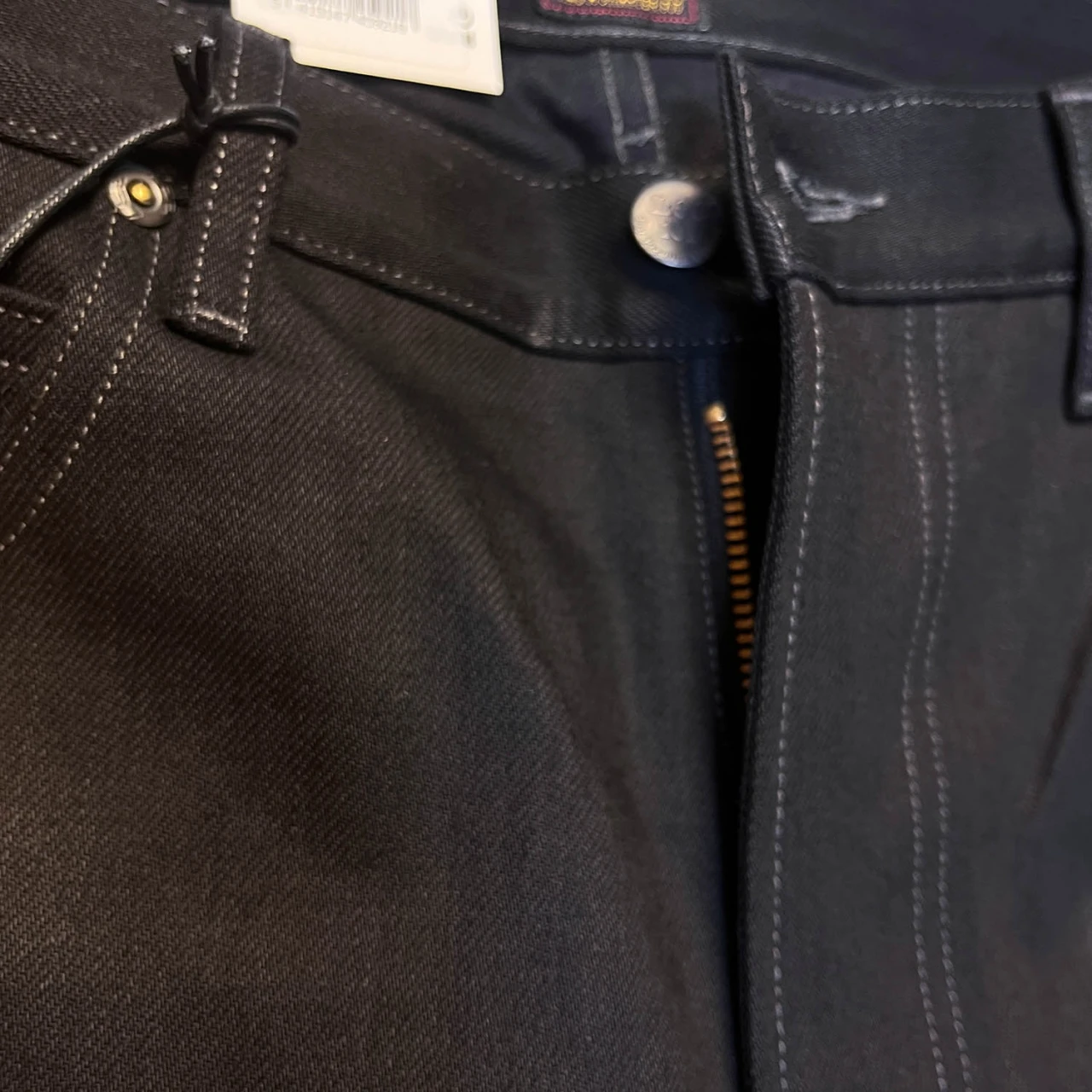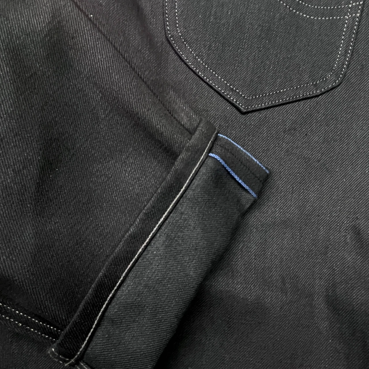 Der Denim ist in reinem Schwarz gehalten, mit einem trockenen und sauberen Finish. Nach jahrelangem Tragen bildet er mit der Zeit Falten und ausgeblichene Stellen, die deinen Lebensstil widerspiegeln.