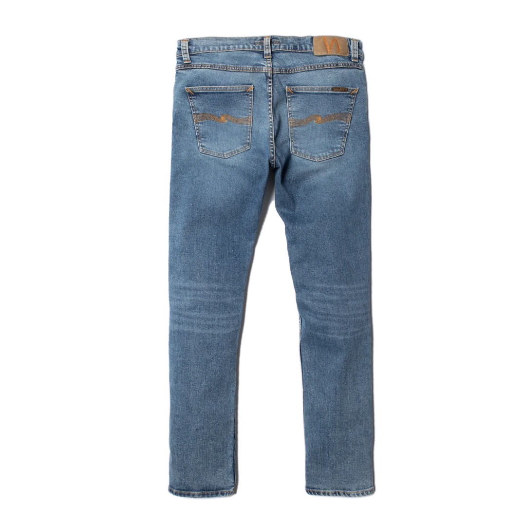 Nudie´s Jeans mit enger Passform und nach unten hin schmaler werdendem Bein, hergestellt aus biologischem Comfort Stretch Denim. Sie wird gleichmäßig von der Hüfte an abwärts bis zum Knöchel enger, ein Aspekt, der die Lean Dean zu einer der beliebtesten Passformen gemacht hat.