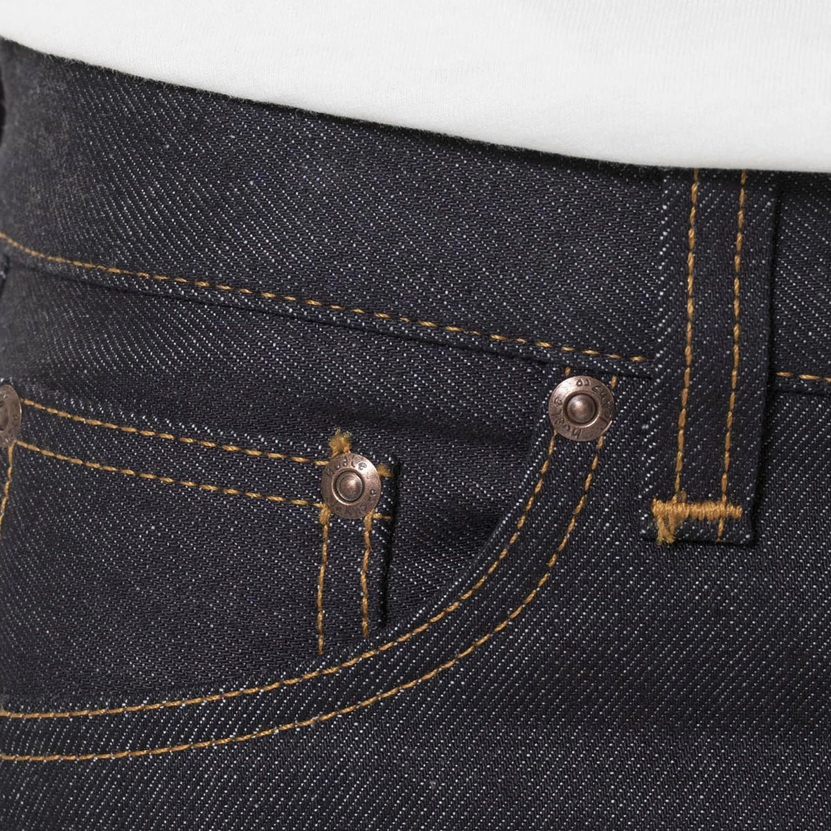 Steady Eddie II hat eine normale Passform mit mittlerer Bundhöhe und Platz für Gesäß und Oberschenkel – optimal für diejenigen, die etwas mehr Bewegungsfreiheit wünschen. Am Beinabschluss wird dieses Modell enger, was ihm eine klassische, nach unten hin schmaler werdende Silhouette verleiht. Dieses Modell ist in den Varianten Dry Denim, Selvage Denim, vorgewaschener Denim und schwarzer Denim erhältlich.