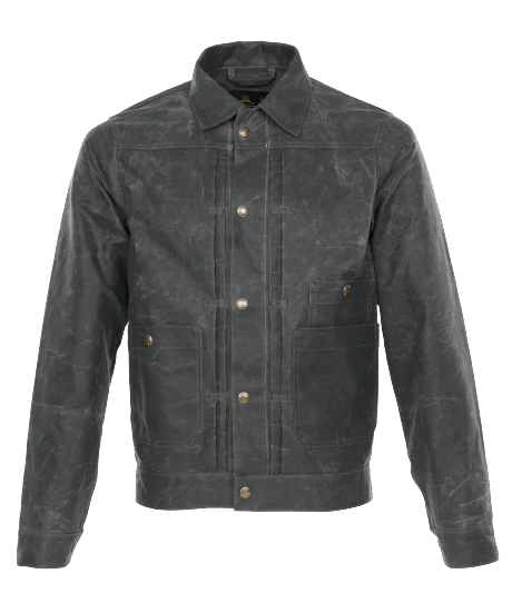 Der Schnitt in Kombination mit unserem Armor Cloth machen dieses Teil zu einer Jacke für alle Jahreszeiten. Armor Cloth ist ein steifer, stark gewachster Baumwollstoff, der ursprünglich dafür benutzt wurde Planwagenverdecke bzw. Fahrzeugverdecke herzustellen. Wegen der guten Wasser abweisenden Eigenschaften wurde er aber auch für Outdoorbekleidung verwendet. Der Stoff ist robust, Wasser abweisend und langlebig. Der Träger muss daher mit einer gewissen Eintragephase rechnen. Ist der Stoff einmal gebändigt, ist er bequem und bekommt mit der Zeit eine unschlagbare Patina.