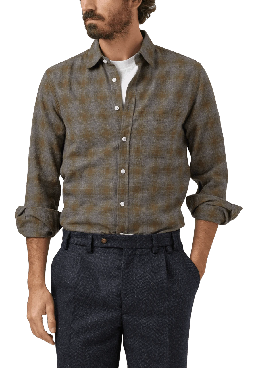 Das Trinity Shirt von Portuguese Flannel ist ein Karoshirt der dezenten Sorte. Das edle Flanneltuch ist mit seinen erdigen Tönen ist mit vielen Farben gut kombinierbar.