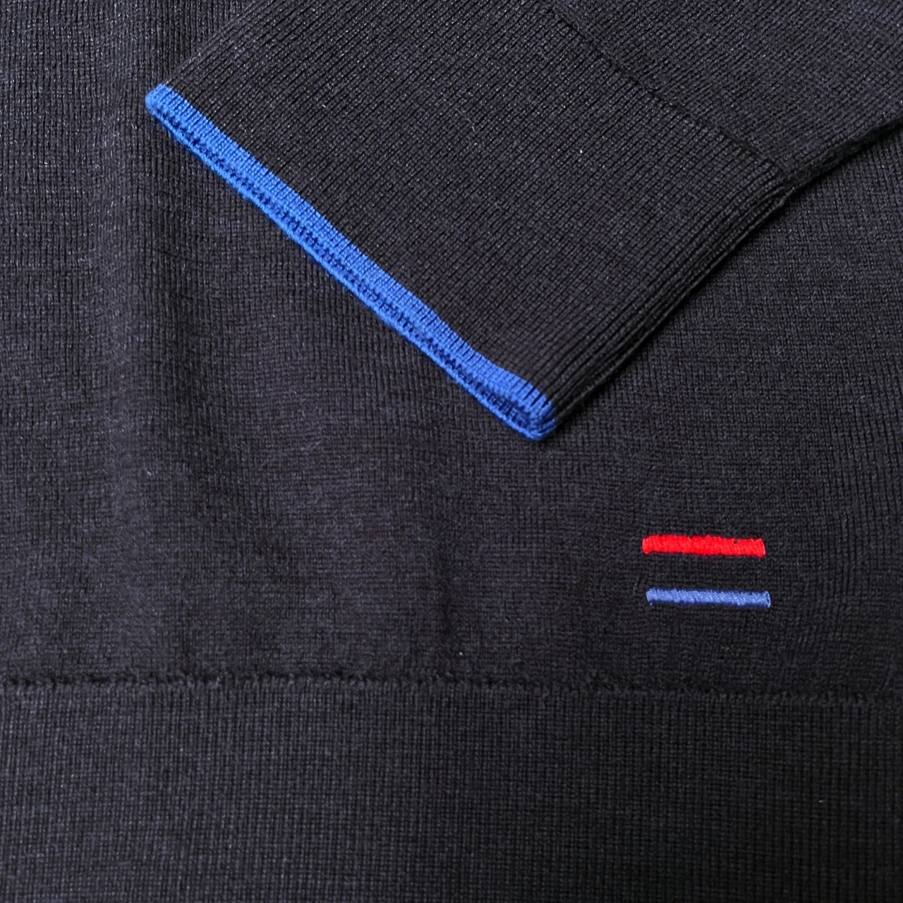 Ärmel Rippenbündchen mit blauem Streifen am Armabschluss.