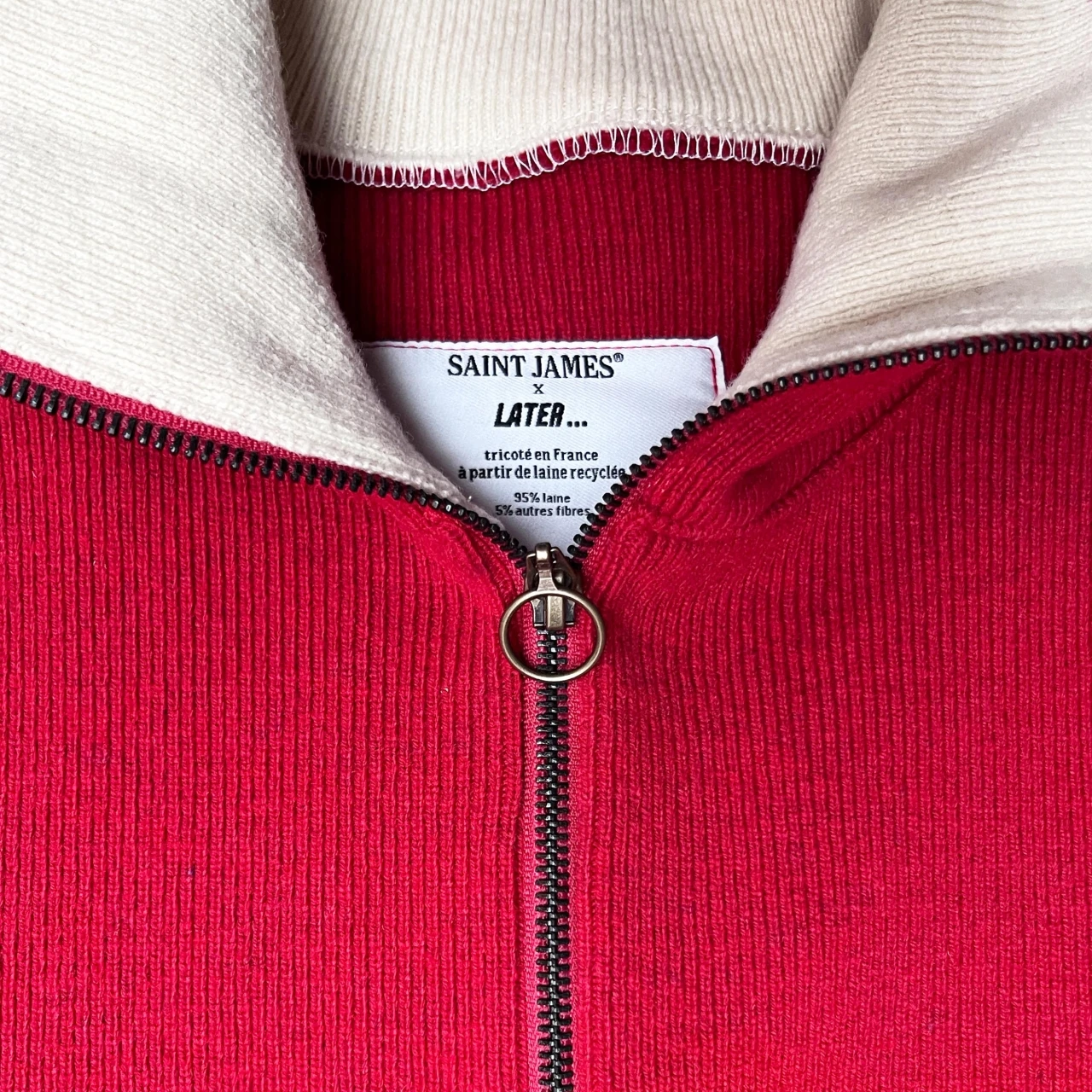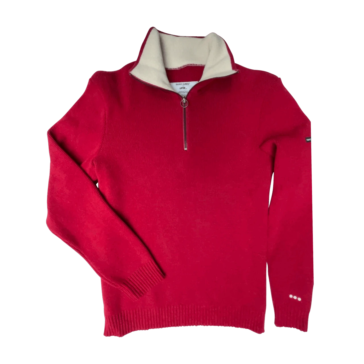 Pullover aus Wolle. Wir mögen seinen lässigen Look, inspiriert von Sportswear und nautischem Stil. Seine Zusammensetzung aus 95 % Wolle und 5 % Recyeiclig- Material macht es bequem, atmungsaktiv und warm.