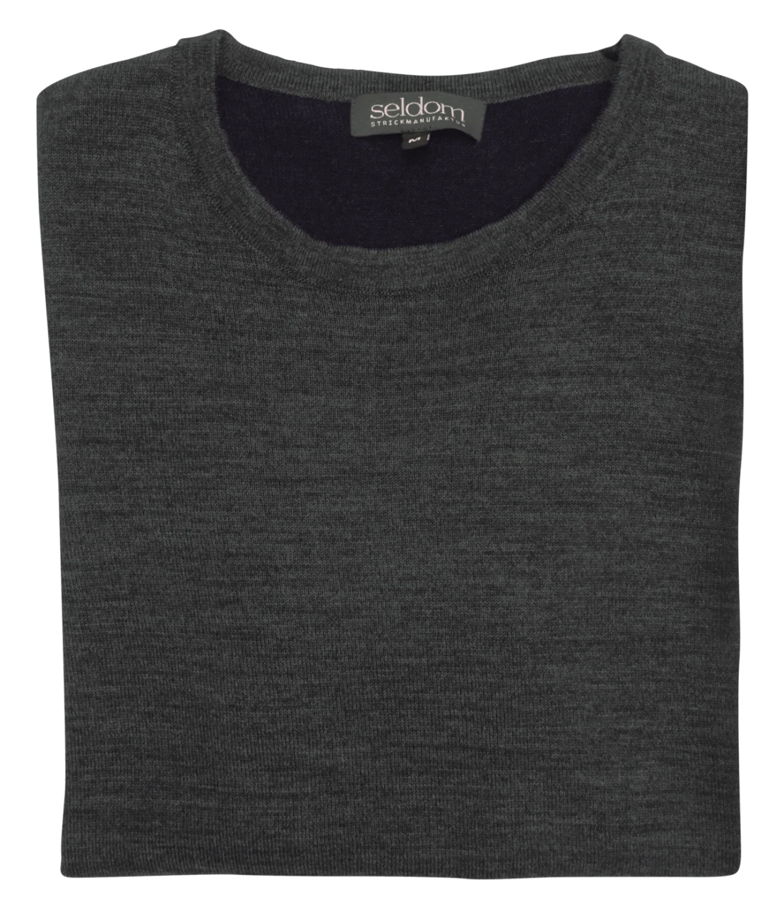 Die Oberfläche ist durch die zweifarbige Stricktechnik leicht melangierend. Durch die kompakte Rechts/Links Strickart sind die Pullover in Verbindung mit dem hochgedrehten Merinokammgarn besonders pillingresitent. Zudem Maschinenwaschbar bei 30 Grad im Wollwaschgang.