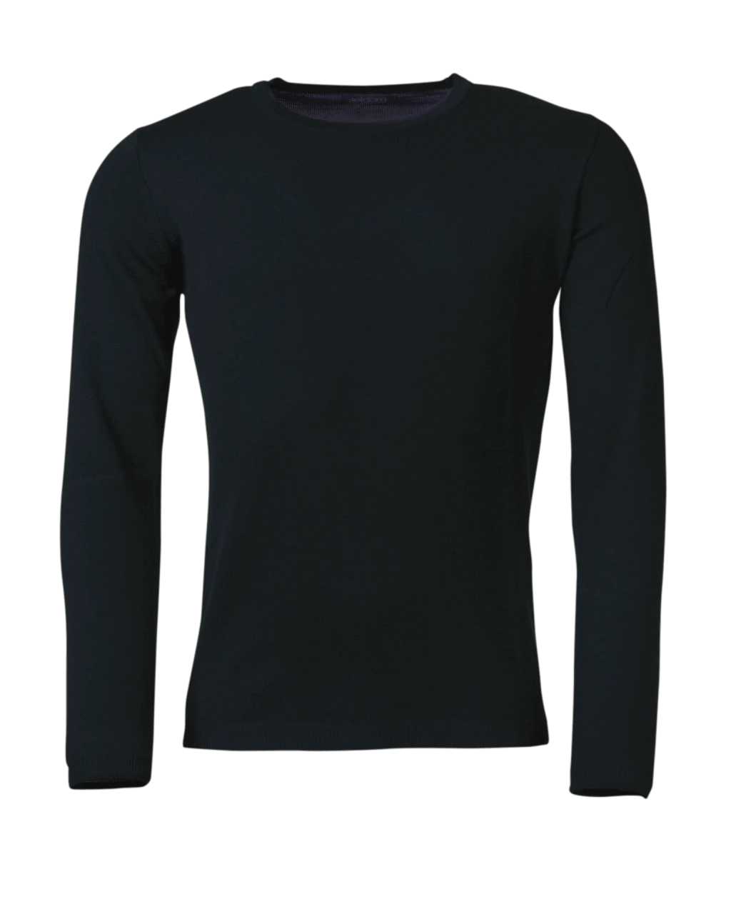 Die Oberfläche ist durch die zweifarbige Stricktechnik leicht melangierend. Durch die kompakte Rechts/Links Strickart sind die Pullover in Verbindung mit dem hochgedrehten Merinokammgarn besonders pillingresitent. Zudem Maschinenwaschbar bei 30 Grad im Wollwaschgang.